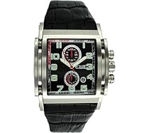 Equipe Q401 elements in the case-side; pushers; and crown- design points indicative of horsepower and ingenuity Precision Miyota/Citizen quartz movement 316L surgical stainless steel case Leather strap with engraved clasp logo Highly scratch resistant non glare treatedsapphire coatedcrystal Full function chronograph Date indicator Screw down crown logo 100m water resistant (330 feet) Screw in case back Luminous hands and markers 44mm not including crown Serial numbered watch Custom EQUIPE presentation watch box Band Color: Black Leather; Band Width: 32mm near case; 22mm near clasp/buckle; Bezel Color: Silver; Case: Silver + Rectangle-shaped; Case Finish: Flat + Stainless Steel; Case Thickness: 15mm; Case Width: 45mm; 49mm with crown; Clasp / Buckle: Strap Buckle; Dial: Black + analog; Hand Color: Silver; Movement: Other + quartz; Time Zones: Single; Water Resistance: 10 atm; ...